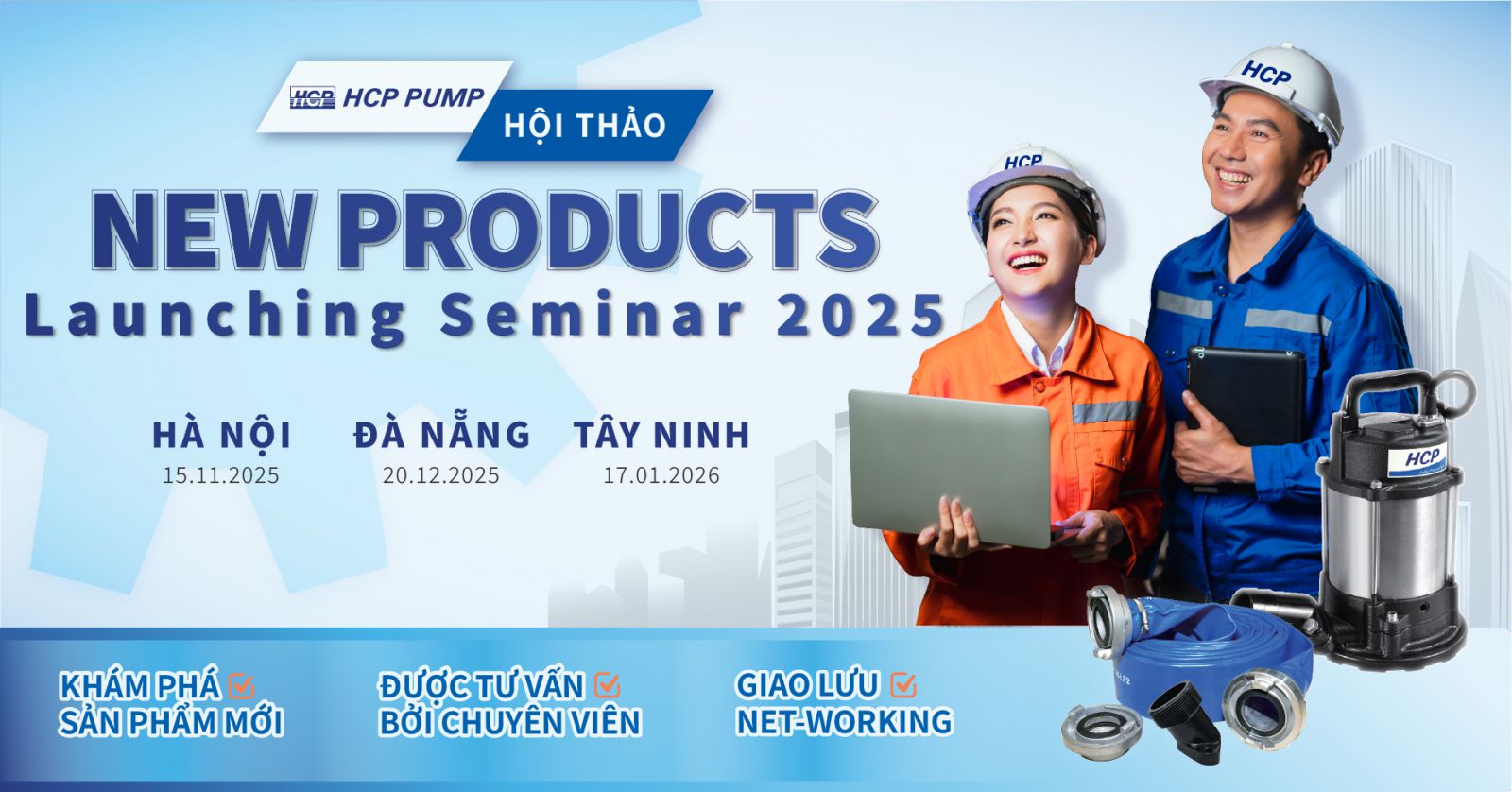 HCP Pumps Việt Nam trân trọng giới thiệu chuỗi sự kiện đặc biệt Ra Mắt Sản Phẩm Mới 2025 – hành trình kết nối công nghệ và cộng đồng kỹ thuật trên toàn quốc. Với thông điệp: