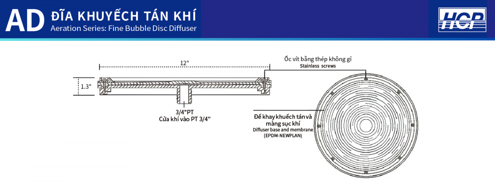 **Đĩa khuếch tán bọt khí mịn đáp ứng mọi nhu cầu thông khí của bạn-Thiết kế ưu việt ngăn trào ngược, linh hoạt và độ bền cao.**