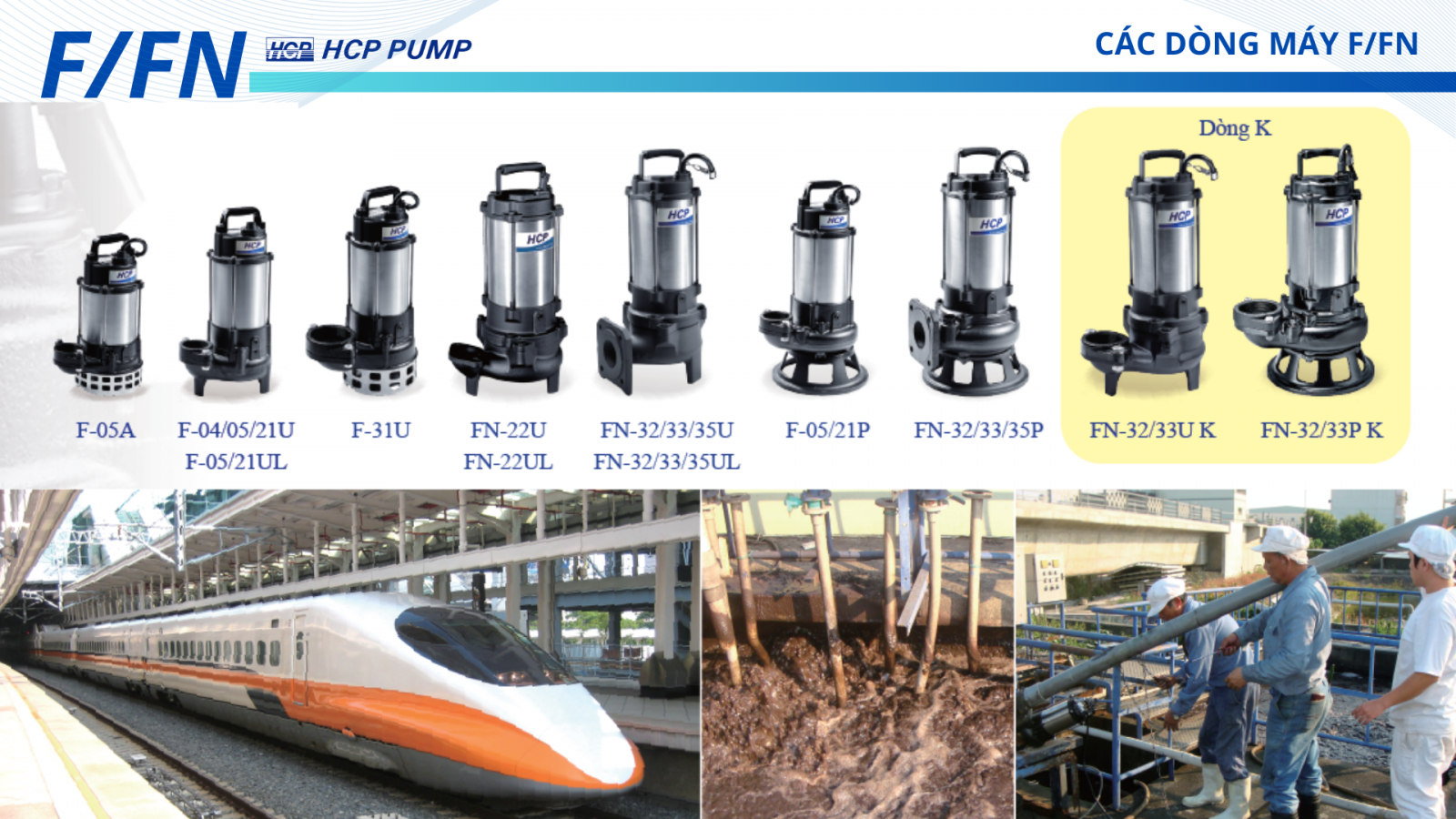 - Dòng K: thiết kế gọn nhẹ, dễ dàng di động, không cần lắp với ống co, hiệu quả kinh tế hơn so với dòng FN thông thường.